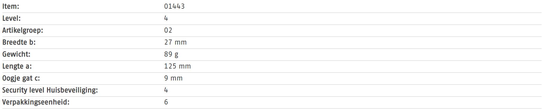 Vanaf maat 80 gehard stalen oog