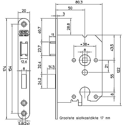 Nemef 1269/5-50 Deurslot rechts dr 1 messing voorplaat