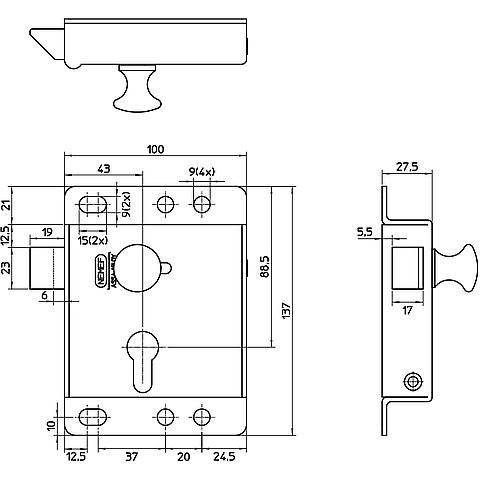Productinformatie "Nemef 1640K/5 Opleg dagschootslot links dr 2"