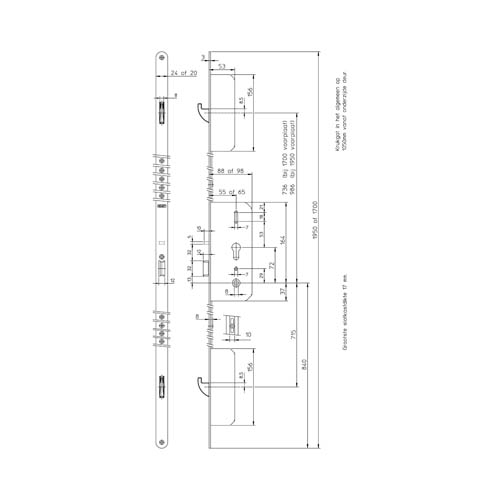 | Afmetingen voorplaat (in mm): | 1700 x 24 |