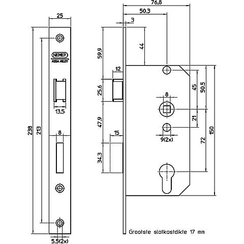 Productinformatie "Nemef 569/4-50 Deurslot rechts dr 1"