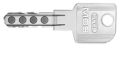 De MCS-sleutel combineert maar liefst twee technologieën voor drievoudige beveiliging: één magnetische en twee mechanische beveiligingen. De in totaal achtvoudige sleutelcontrole verloopt via de vier magneten aan beide kanten, die onafhankelijk van elkaar permanent gemagnetiseerd zijn. Bovendien zorgen de mechanische bescherming via het lengteprofiel en de zij-insnijdingen voor een ongeëvenaarde veiligheid.