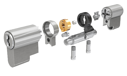 Anders dan bij traditionele sluitsystemen worden in 3KS-cilinders de vergrendelingselementen via de curvenfrezing op de sleutel bewogen. Er hoeft niet tegen een veerkracht te worden gedrukt. In totaal 12 ongeveerde, massieve blokkeerstiften worden via gedwongen st uring door de 6 sleutelcurven in bepaalde posities gebracht en via 2 controlebalken gecontroleerd. Een profielcontrolebalk in de kern controleert de extra codering van de sleutel. In totaal wordt de 4KS-sleutel vier keer gecontroleerd. Dat zijn 3 controles meer dan bij gangbare systemen. Op die manier wordt optimale veiligheid gerealiseerd.