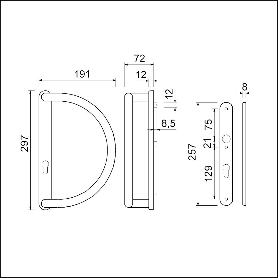 Complete set: Buitenschild 12 mm met deurgreep 265/1