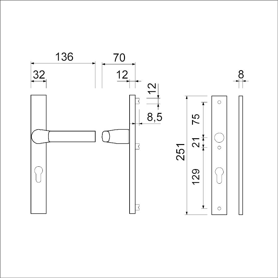 Complete set: Buitenschild 12 mm met deurkruk 379 ROTA verend vastdraaibaar, binnenschild 8 mm met deurkruk 379 ROTA verend vastdraaibaar,